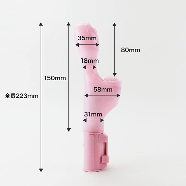 奥に当たるたび先端にある2つのイボが快感アップ!無数の突起が配置されたブラシ型の子機によるクリ刺激でオルガズムを感じやすい身体へ♪スイング&振動機能搭載、単四電池を4本使用