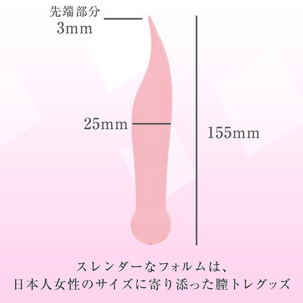10種類の振動パターン搭載でお風呂でも使える完全防水仕様♪日本人女性の膣サイズに合わせたスレンダーなフォルムで優しく心地よい刺激を与えます。