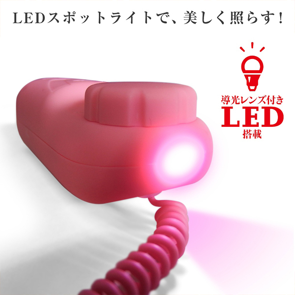 超強力6Vのハイパワー振動を無段階調整ダイヤルで直感的に操作可能!さらに捻じれ&折れにくい螺旋コードと根本の保護で断線を防止、また、当てたい箇所を確認できるLEDライトも搭載◎「気持ちいい」「使いやすい」と感じられるよう、使う人に寄り添って設計された日本製ローターです。