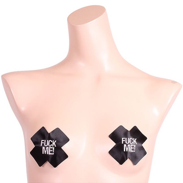 ナイトパーティーなど暗い場所で大活躍!「FUCK ME!」と書かれたクロス型の光るニップレスシール。