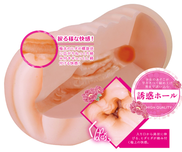いやらしく濡れるあそこが竿をキツく締め上げて奥まで誘い込む誘惑オナホール「誘惑少女」。