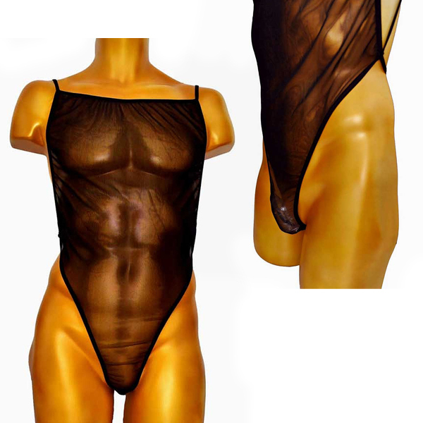 筋肉美を際立たせるシアー素材を使用した黒の男性用ボディストッキング。昔ばなしの金太郎の衣装を令和スタイルにデザイン!背面Tバック仕様、フリーサイズ