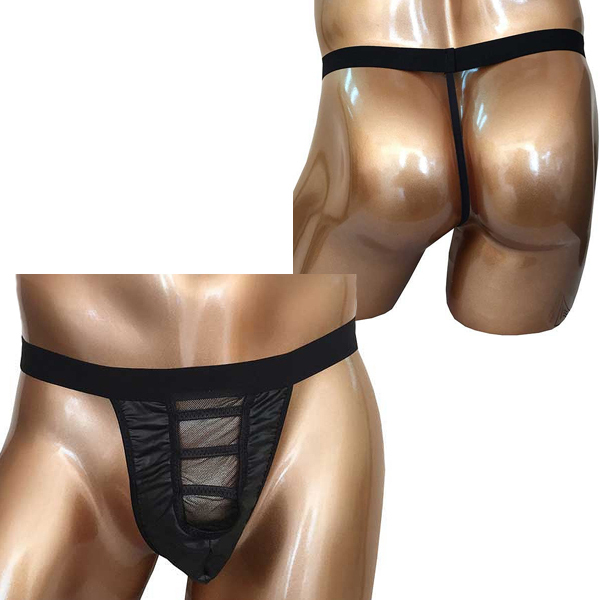 涼し気なブラックメッシュの窓が小悪魔な魅力を放つ男性用GストリングTバック。シアー素材から覗くシンボルに目が釘付け♪ウエストは安定感のある太めのゴムでしっかりホールド!ブラックカラー、フリーサイズ