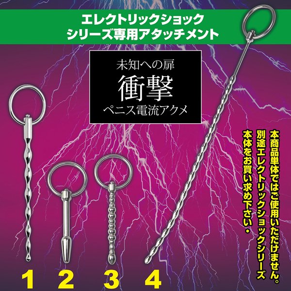 ペニスに走る衝撃!低周波パルスグッズ「エレクトリックショック」シリーズから、金属製の専用ブジーアタッチメント。