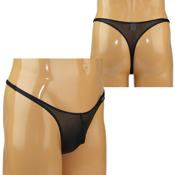 メンズ 2wayストレッチシースルーフルシームTバック Mブラック