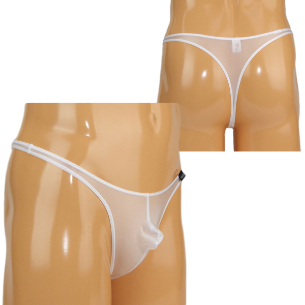 どこから見ても見えちゃう!男の象徴を曝け出す大胆なメンズ用シースルーTバック。下半身にフィットする伸縮性抜群なストレッチ素材を使用!T字デザインの大胆さに胸が高まります♪◎ホワイト、Lサイズ