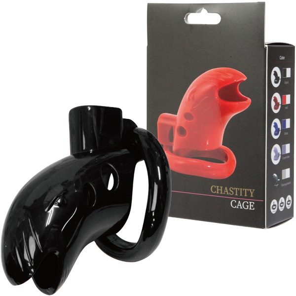 2つのパーツで簡単装着できる機能性に優れたプラスチック製の鍵付き男性用貞操帯。