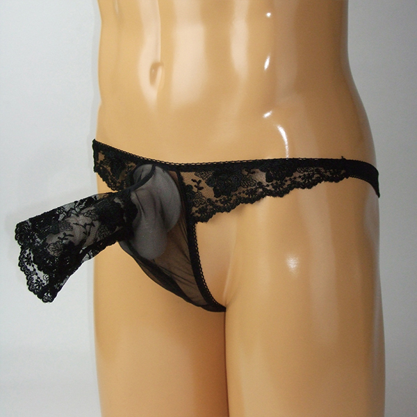 HOME > ランジェリー > メンズ ショーツ・ビキニ > メンズ スケスケシースルー素材のセクシーな生地にレース付きぞうさん貫通型TB ブラック