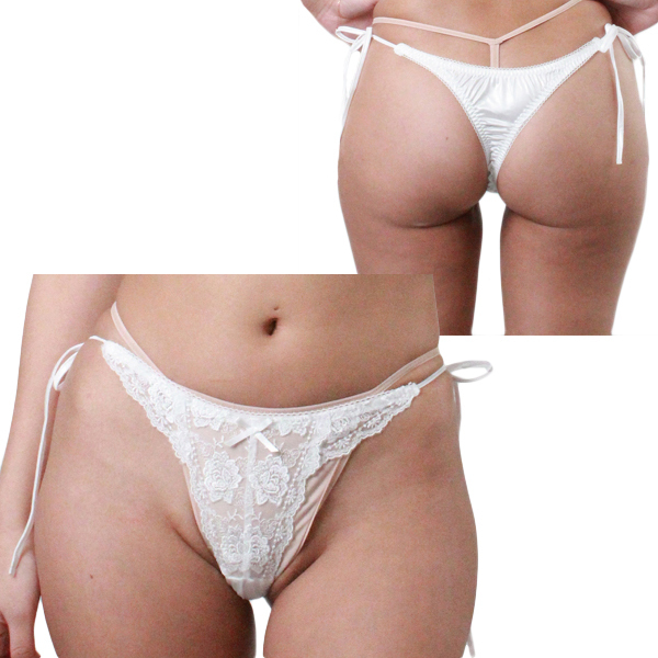 HOME > ランジェリー > ショーツ > 光沢生地にレース付き脇ヒモTバック Lサイズ ホワイト