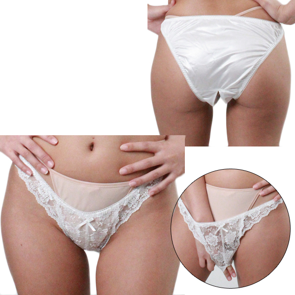 HOME > ランジェリー > オープン ブラ・ショーツ(穴あき) > 柔らかな光沢生地にレース付きオープンフルバック 2Lサイズ ホワイト