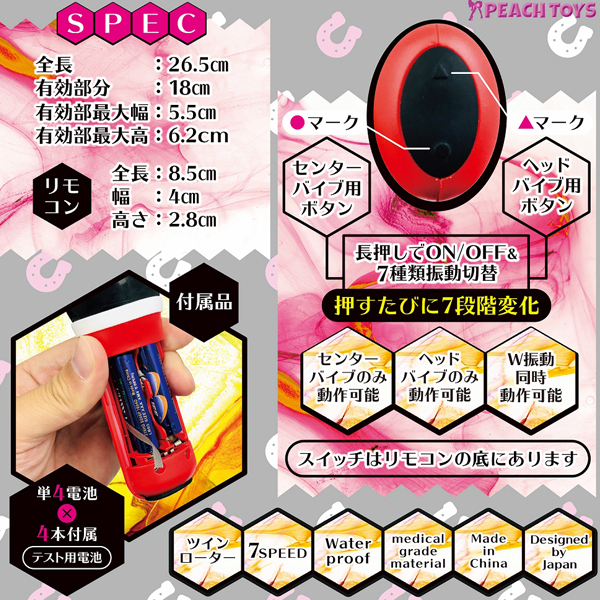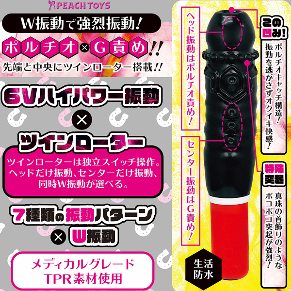 とにかくヤバイ「YAVIBE!」4弾目は、幅5.5cmの超極太な凹凸突起&ポルチオキャッチ構造の黒光りボディでとことん責める!先端と中央から発する6Vの強烈振動が奥とGスポを同時に刺激。ヤバイほどの快感が全身を駆け巡る!素材はハリ弾力に優れたメディカルグレードTPR仕様。7種類の振動を搭載し、お手入れしやすい生活防水式!振動は独立操作可能◎単4電池を4本使用