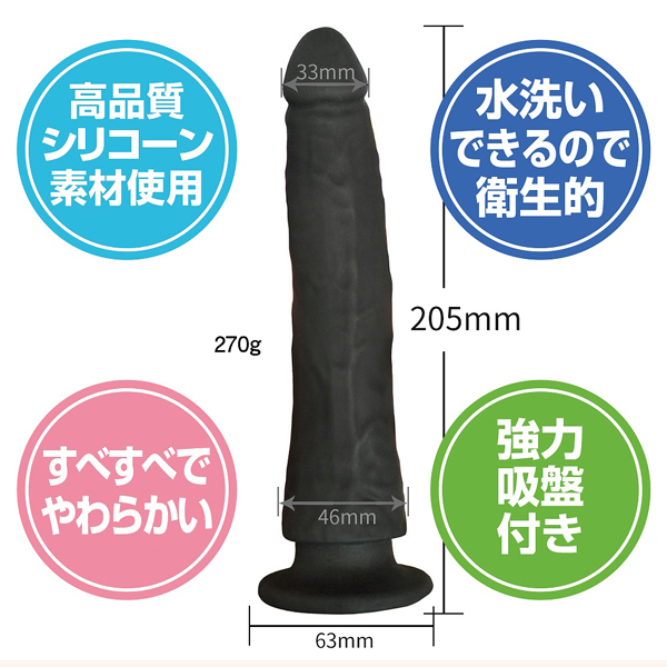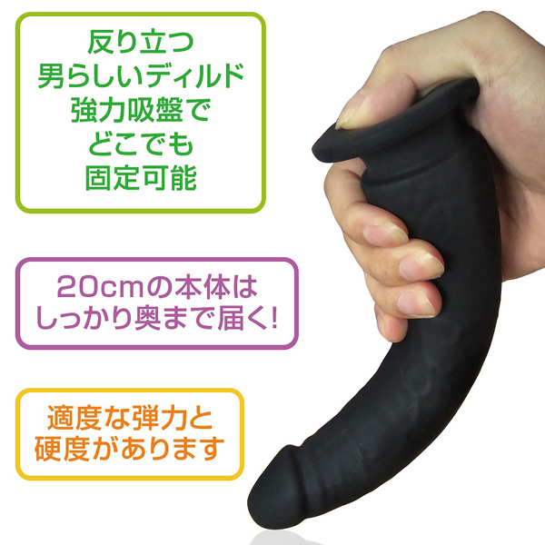 奥までしっかり届く!全長20.5cm、挿入幅3.3〜4.6cmと挿れごたえのあるアナル上級者向けの吸盤付きディルド。激しいプレイも難なくこなせる適度な硬さと弾力が持ち味!本物のようにリアルで逞しく反りかえる造形にもこだわりを感じさせる逸品です。素材は肌に優しい滑らかな高品質シリコン仕様!床や壁などに固定してお使いいただけます。