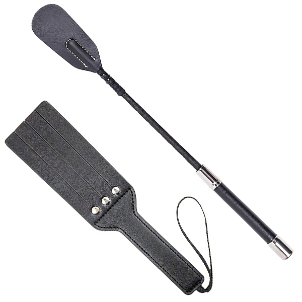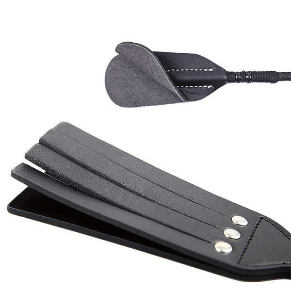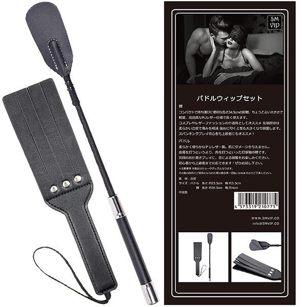 大きなパドルで強烈な打音を楽しみながら、乗馬鞭の打面で鋭利な痛感も味わえる「<SM VIP>パドルウィップセット」。