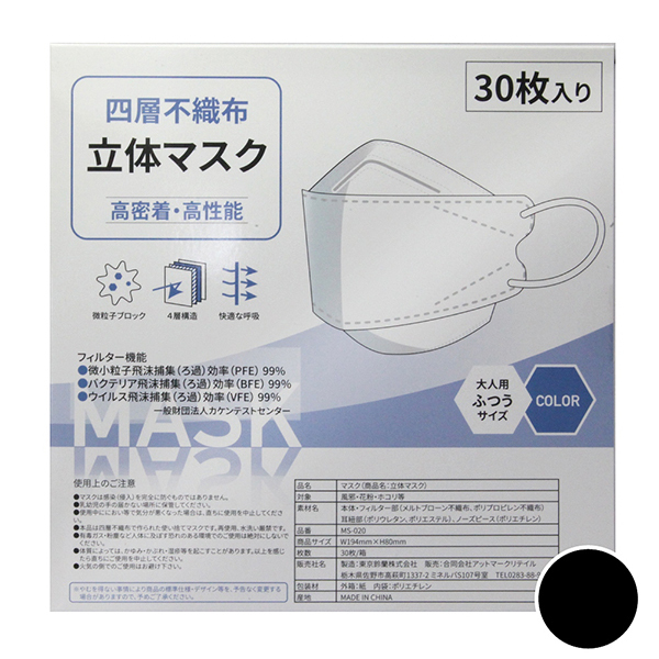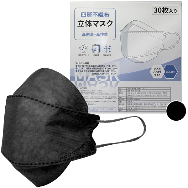 HOME > 特殊アイテム > 特選 > 四層不織布立体マスク 30枚入り (ブラック)