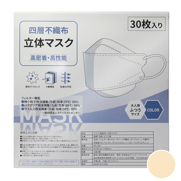 HOME > 特殊アイテム > 特選 > 四層不織布立体マスク 30枚入り (ハニー)