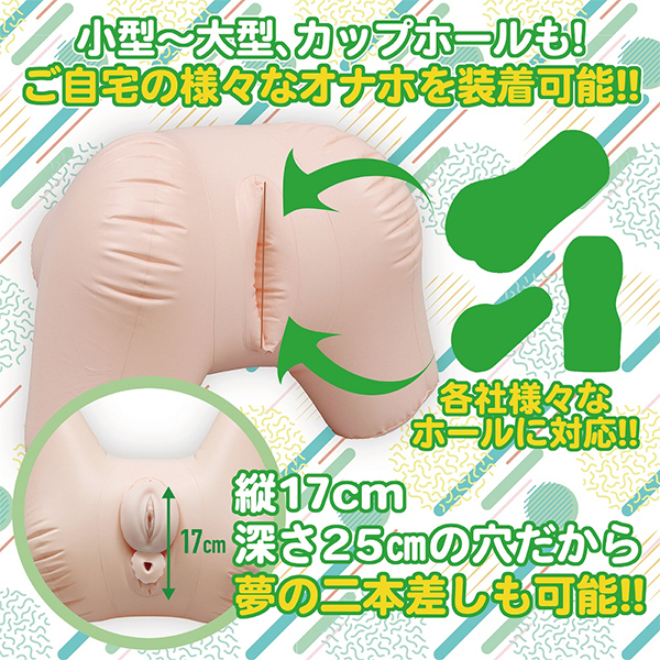 空気を注入することでリアルサイズの爆裂ヒップが完成する「オナホマジックPISTON2爆裂ヒップ」。