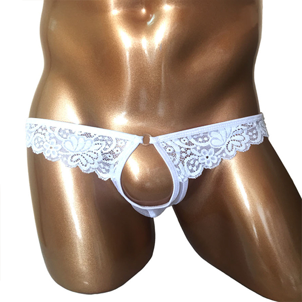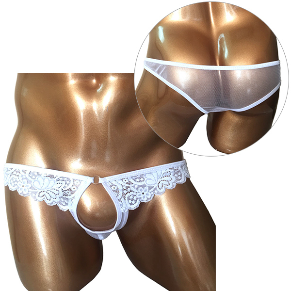 開放感バツグン!男のシンボルを魅せつける竿出しホールレースショーツです♪レースとメッシュ生地だから全部スケスケ!締め付け感の苦手な方は是非どうぞ♪お洗濯の際は、優しく手洗いするか、網ネットに入れて洗濯してください。