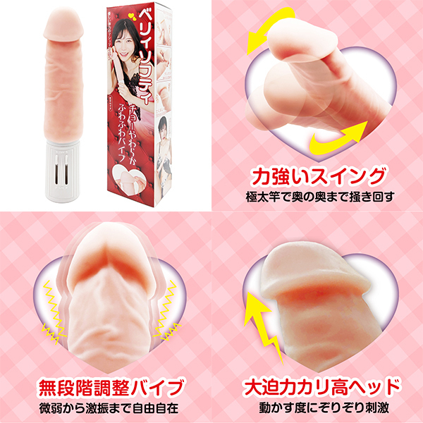 大きくたくましいボディとチョーやわらかふわふわなバイブ「ベリィソフティ」大迫力のカリ高ヘッドと、極太の竿が力強いスイングで奥の奥まで掻き回す!最大の特徴は、とっても伸びる優しい弾力のマシュマロスキン。