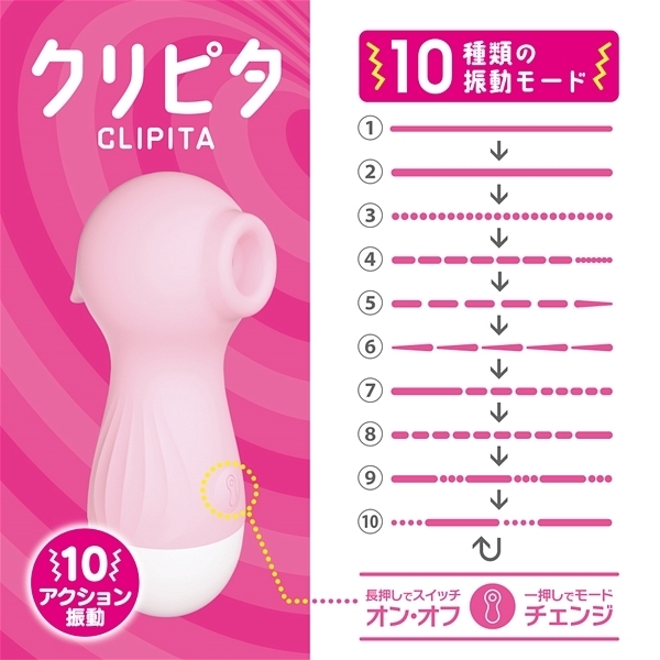 吸い付いて震えるクリピタは、シリコン素材で柔らかい触感とケーブルレスで簡単充電が特徴の吸引グッズ。