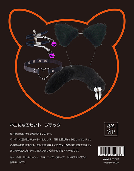 仕様:パッケージ:30.0×22.0×3.0cm 本体:耳カチューシャ約20cm×約20cm・首輪直径約12〜14cm・ップルクリップ(ハサミ口最大約1.6cm・長さ約5.6cm)・しっぽアナルプラグ直径約2.7cm・しっぽ長さ約40cm セット内容:耳カチューシャ、首輪、ニップルクリップ、しっぽアナルプラグ 原産国:中国 重量:本体135g
