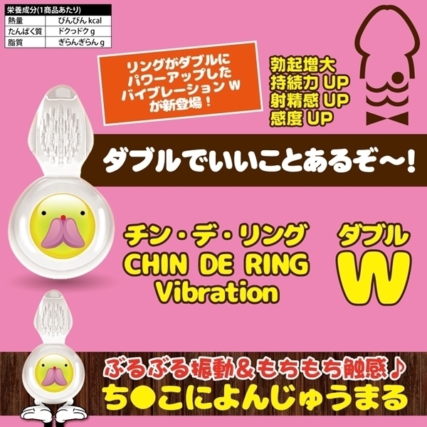 大人気のチン・デ・リング振動バージョンにリングが2つにパワーアップしたチン・デ・リングバイブレーションWが新登場!ぶるぶる振動&もちもち触感♪ち●こによんじゅうまる勃起増大・持続力UP・射精感UP・感度UP