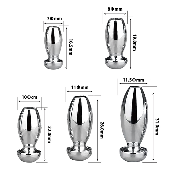 商品ID:b34012 カラー:-- 種類:アナル拡張グッズ 仕様:パッケージ:10.0×5.0×1.5cm 本体:(1)1.65×0.7cm・(2)1.9×0.8cm ・(3)2.2×1.0cm・(4)2.6×1.1cm・(5)3.1×11.5cm