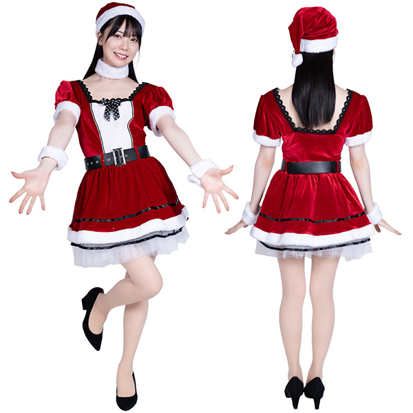 胸元のホワイトが印象的なサンタワンピースが登場!流行のタイトデザインでも水玉リボンでどこか懐かしいクラシックな雰囲気。テーマパークやクリスマスのイベントで、大活躍のサンタクロース。