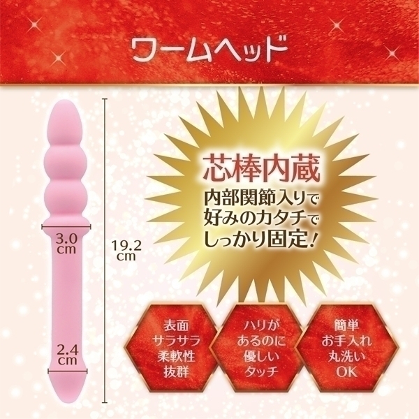 フレキシブルな設計で自在に形を変えられるスティック型のディルドです♪内部に関節を搭載しており、自由に曲げて自分好みの形状に調整可能!シリコン製で柔らかな手触りながら、芯棒入りで安定感も抜群です♪曲げた状態をキープできるので、独自のプレイスタイルを楽しめます!使用後は水洗いで清潔に保てる設計♪水分をよくふき取り、快適な使用感をいつまでもお楽しみください!自由度の高いデザインで、初心者から上級者まで満足できる逸品です♪