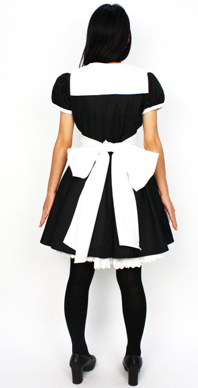 仕様:Sサイズ:B72〜80cm・W58〜65cm 丈:ワンピース75cm(袖丈10cm)・ペチコート45cm セット内容:ワンピース(後ろファスナー、袖パフスリーブ、全円スカート、内側に襟固定用のボタン付)・エプロン・ペチコート(裾レース付、ウェストゴム仕様)・カチューシャ・ブローチ(安全ピン付)
