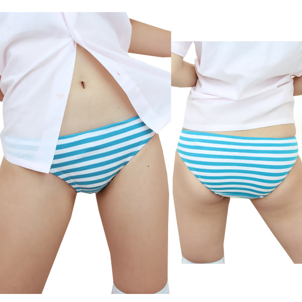 ターコイズ×ホワイトのしまパンに、細めのボーダー柄が登場!細かいしましま柄がとってもラブリー!ミニ丈のコスプレ衣装とあわせれば、見せパンとしてもバッチリ活躍してくれる、萌え度MAXなボーダー柄ショーツです。