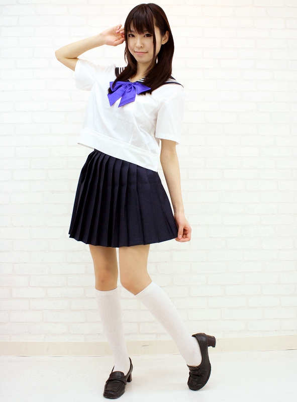 青いリボンが爽やか!キュートな半袖セーラー服コスプレ。