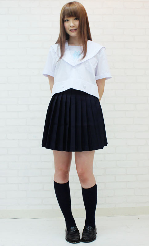 胸元にある水色の刺繍が涼やかな、白セーラー&濃紺スカートの制服コスプレセット(BIG)。