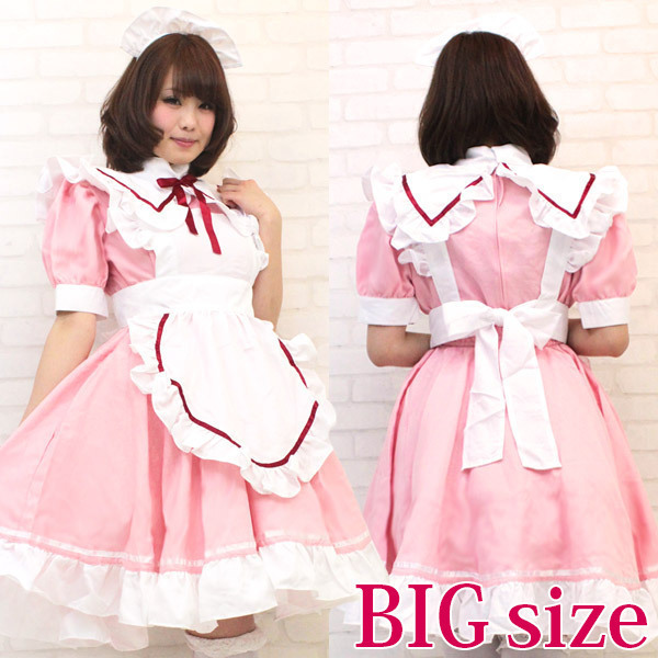 仕様:BIGサイズ:B92〜110cm・W90〜100cm 丈:ワンピース91cm(肩幅:43cm、袖丈31cm、袖口38cm)・エプロン83cm セット内容:ワンピース(ウエストゴム入り、後ろファスナー)、エプロン、カチューシャ