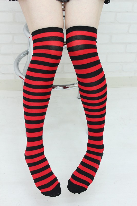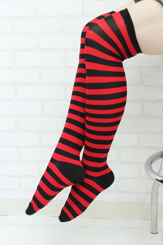 HOME > コスプレ衣装 > 小道具(ニーソックス・猫耳) > ニーハイボーダー レッド・ブラック 幅1cm