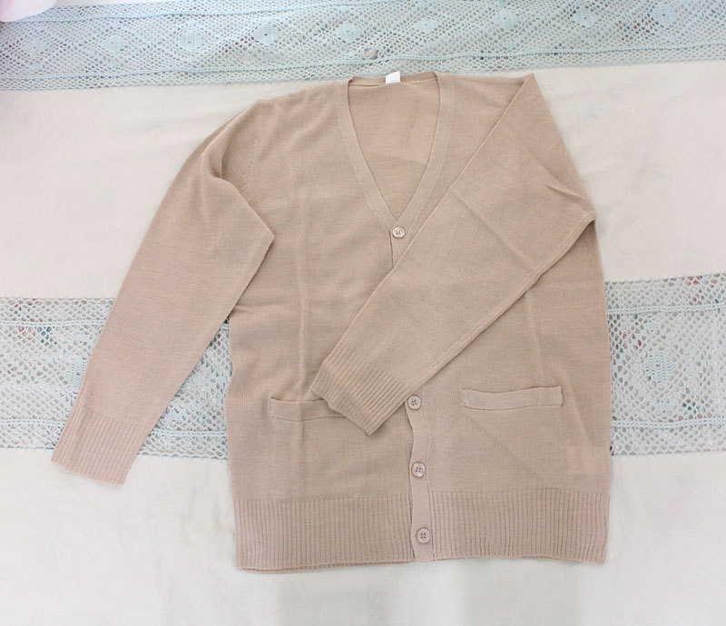 寒い季節に欠かせない!キャメルカラーの「ニットカーディガン」が新登場!あわせやすいシンプルなデザインなので、どんな制服コスプレとも相性抜群!寒さも凌げて、オシャレも楽しめる!まさに一石二鳥のカーディガンです。