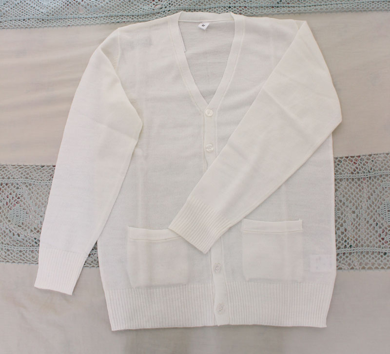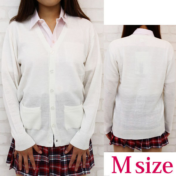 着こなし方はあなた次第!シンプルだけど、とってもオシャレな「ニットカーディガン」が新登場!制服コスプレだけでなく、私服にも合わせやすいホワイトカラー!一枚で色んなオシャレが楽しめます!こちらはMサイズでございます。
