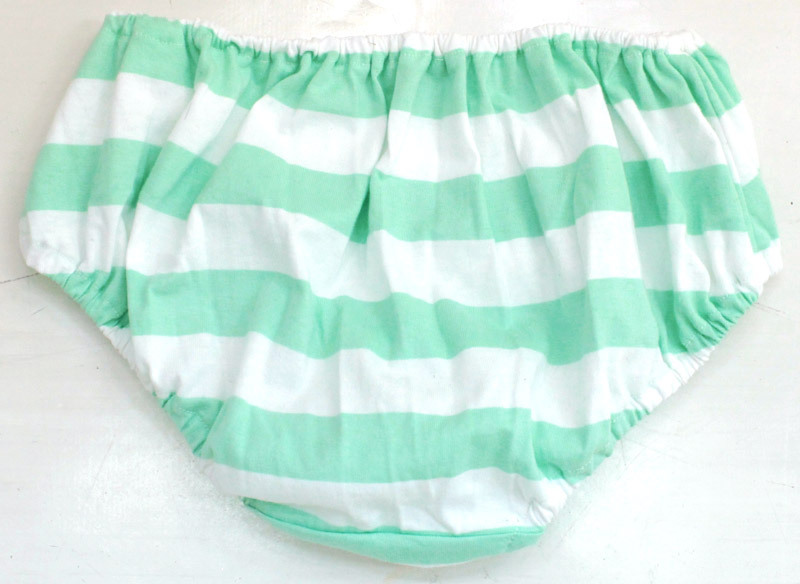 お尻スッポリ、ゆったりした履き心地!白と緑のボーダーがラブリーなしましまショーツ。