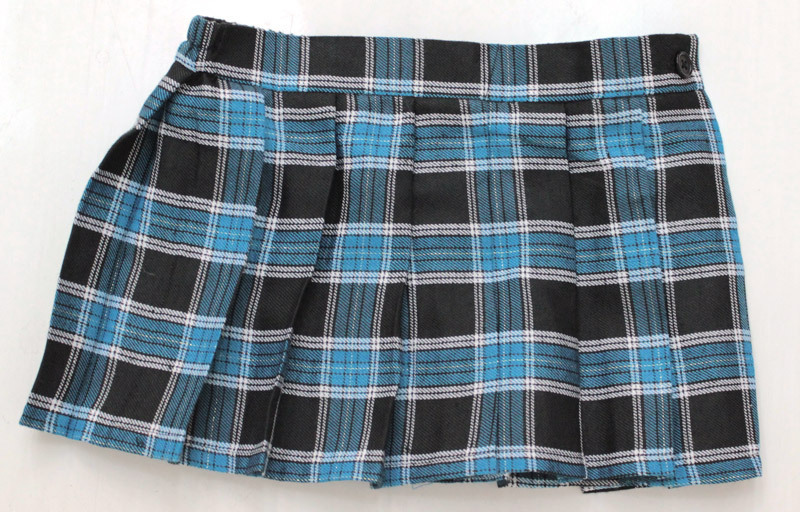 女子学生コスプレのマストアイテム!ラメ入り青チェックがキュートな超ミニプリーツスカート。