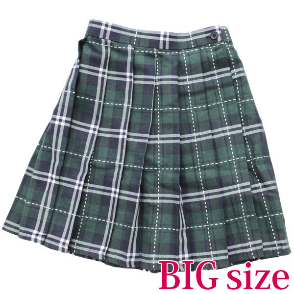 キュートなステッチ入り!グリーン×ネイビーのチェック柄プリーツスカート(BIG)。