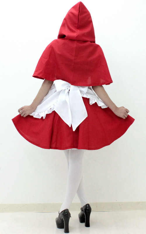 トレードマークの赤頭巾はフード付きのふんわりケープ型!キュっと結んだ大きめリボンがポイントです。