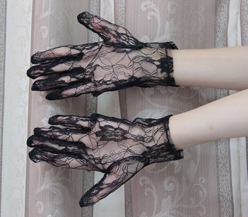いつものコーディネートに加えるだけでエレガントになる総レース仕様!パーティードレスだけでなく、メイド服などのコスチュームにも最適なショートグローブです。
