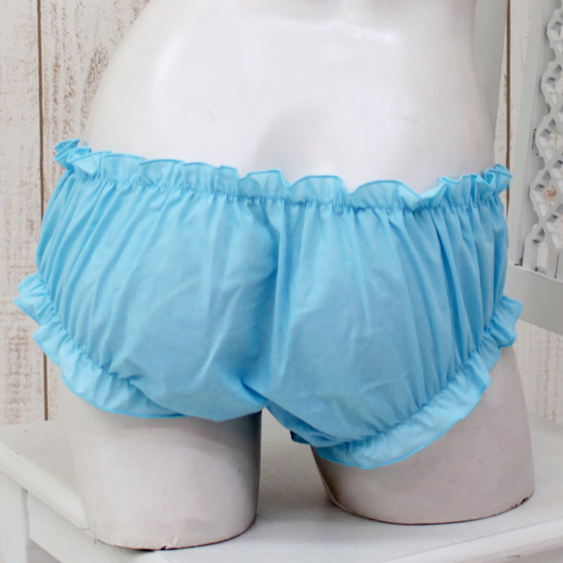 ●爽やかで上品なブルーカラー●肌触りのいい柔らか生地使用●お尻全体を包み込むフルバックタイプ●くしゅくしゅデザインがとびきりキュート●見せパンとしても◎。