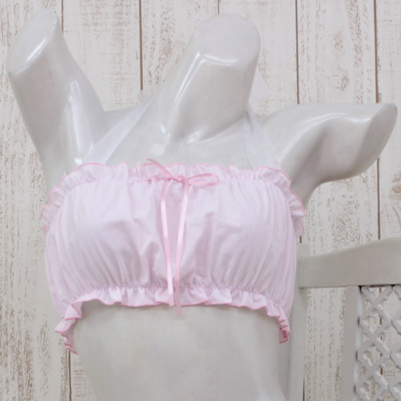 大きめBIGサイズ!ふんわりスイーツ感が漂うパステルピンクのホルターブラジャー単品。
