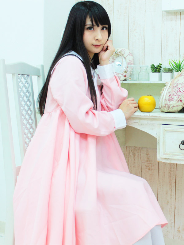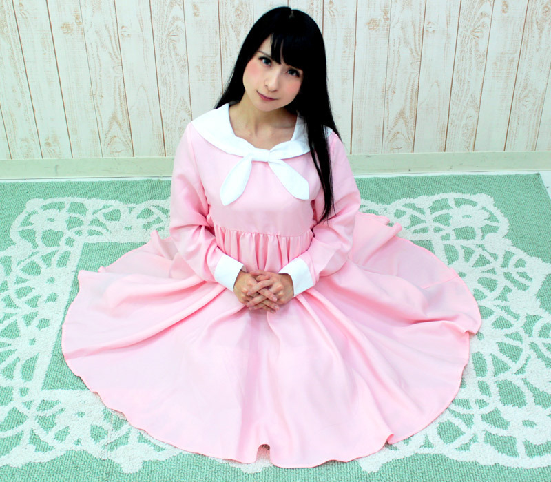 ふんわりフレアに広がるロング丈のワンピースを、セーラー襟で制服風にアレンジした可愛らしいコスプレ衣装です。