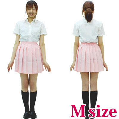 優しいパステルピンクがキュート♪女子校生の定番、制服コスプレには欠かせない無地プリーツスカート(Mサイズ)。
