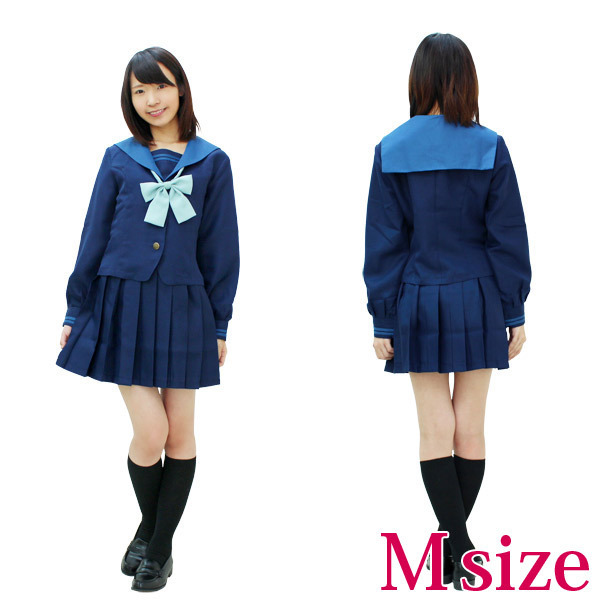 学生らしいさわやかなブルー系♪襟の色が特徴的な人気の旧冬服セーラー服(Mサイズ)。