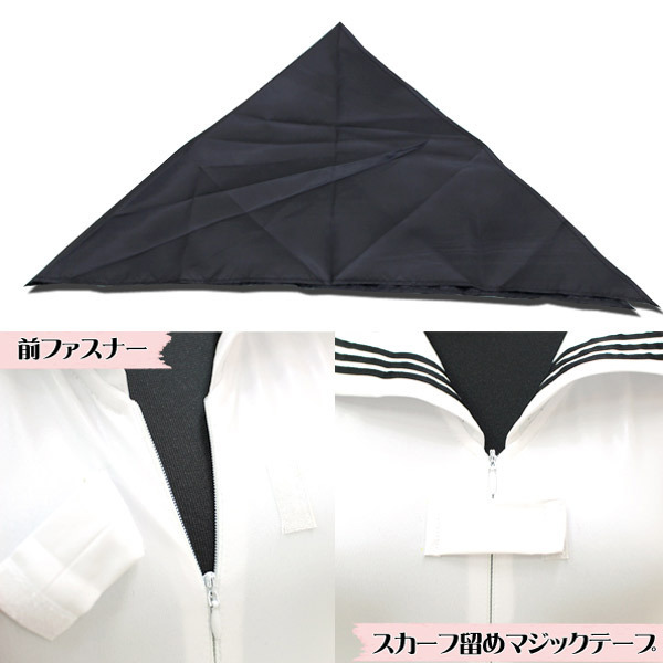 仕様:BIGサイズ:B84〜106cm・W74〜98cm・H76〜100cm 着丈65cm セット内容:レオタード(前ファスナー)、スカーフ(マジックテープ) 素材:ポリエステル95%、ポリウレタン5% セーラーノースリーブレオタード 色:白