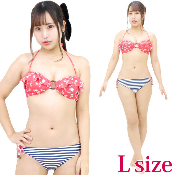 仕様:11Lサイズ:B86cm・H87〜95cm セット内容:トップス(パッド着脱可、ワイヤー無し)、ビキニショーツ 素材:ポリエステル85%、ポリウレタン15% 生産国:日本