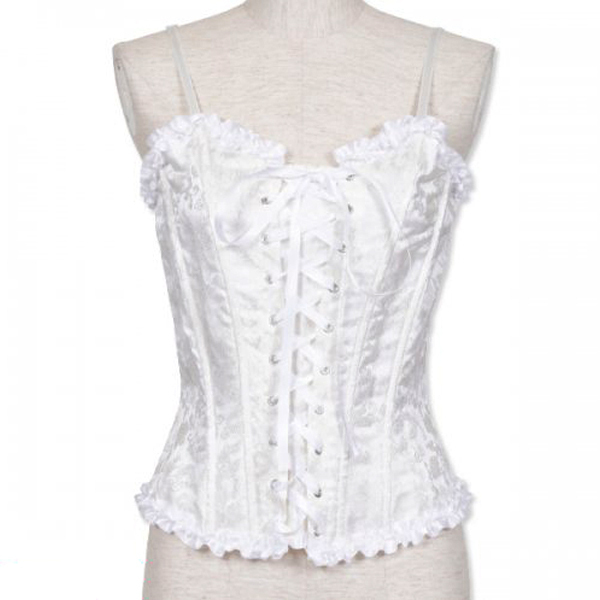 メイド服やロリータ、ゴシックコーデに欠かせないコルセットがプチプラで買える!骨を内蔵した純白カラーの花柄レースアップコルセット単品。