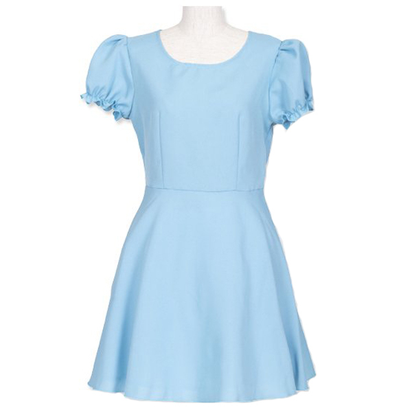 サックスブルーの爽やかな水色パフ袖ワンピース単品。